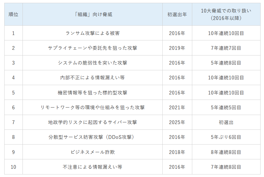 情報セキュリティ 10大脅威 2025 [組織]