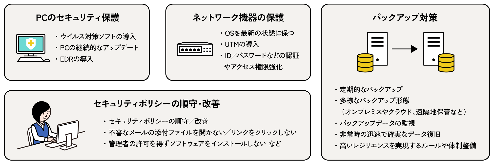侵入対策とデータバックアップが対策の柱