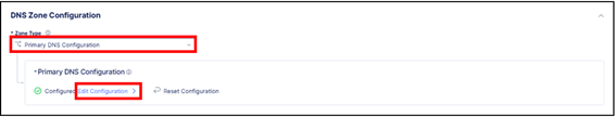 4.ZoneTypeでPrimary DNS Configuration(デフォルト)を選択し、Edit Configurationをクリック