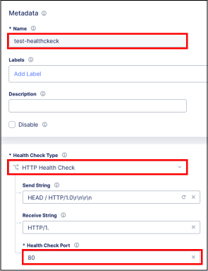 Health Check Type | Health Check Typeを選択。選択可能なTypeは下記 HTTP(デフォルト) / HTTPS / TCP / UDP / ICMP |