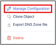1. Home > DNS Management > Manage > DNS Zone Management からDNS LBを設定するゾーンの”…”をクリックし、一覧からManage Configurationをクリック